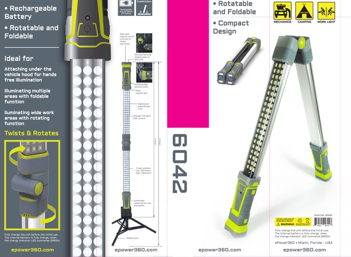ePower360 designs and develops a variety of high quality multi-functional rechargeable power generators, multi-purpose power sources, vehicle battery power boost assist systems (Jump starters), pure and modified sine wave power inverters, and high power LED spotlights/work lights. The ProLite Twist is a multi-functional LED light […]